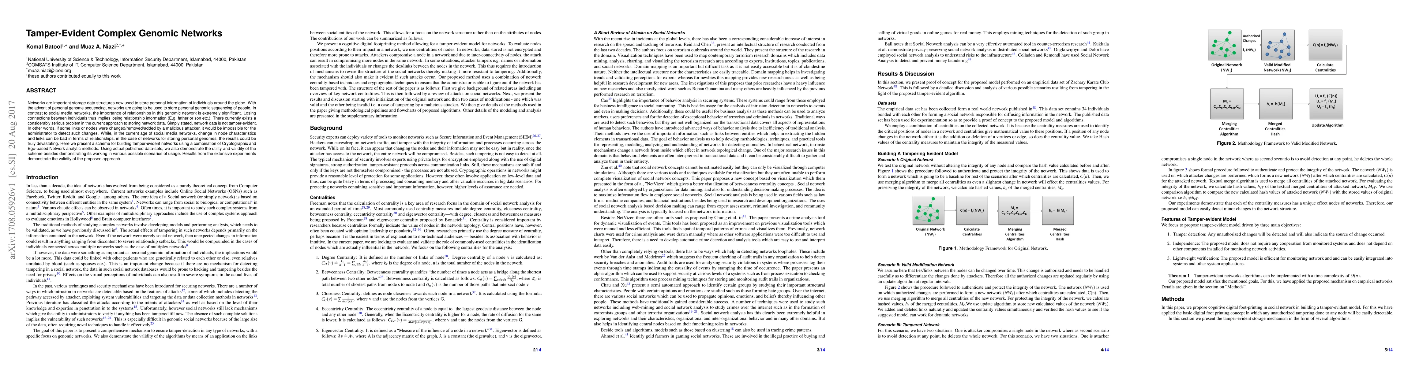 Networks are important storage data structures now used to store personal information of individuals around the globe. With the advent of personal genome sequencing, networks are going to be used to store personal genomic sequencing of people. In contrast to social media networks, the importance of relationships in this genomic network is extremely significant. Losing connections between individuals thus implies losing relationship information (E.g. father or son etc.). There currently exists a considerably serious problem in the current approach to storing network data. Simply stated, network data is not tamper-evident. In other words, if some links or nodes were changed/removed/added by a malicious attacker, it would be impossible for the administrator to detect such changes. While, in the current age of social media networks, change in node characteristics and links can be bad in terms of relationships, in the case of networks for storing personal genomes, the results could be truly devastating. Here we present a scheme for building tamper-evident networks using a combination of Cryptographic and Ego-based Network analytic methods. Using actual published data-sets, we also demonstrate the utility and validity of the scheme besides demonstrating its working in various possible scenarios of usage. Results from the extensive experiments demonstrate the validity of the proposed approach.