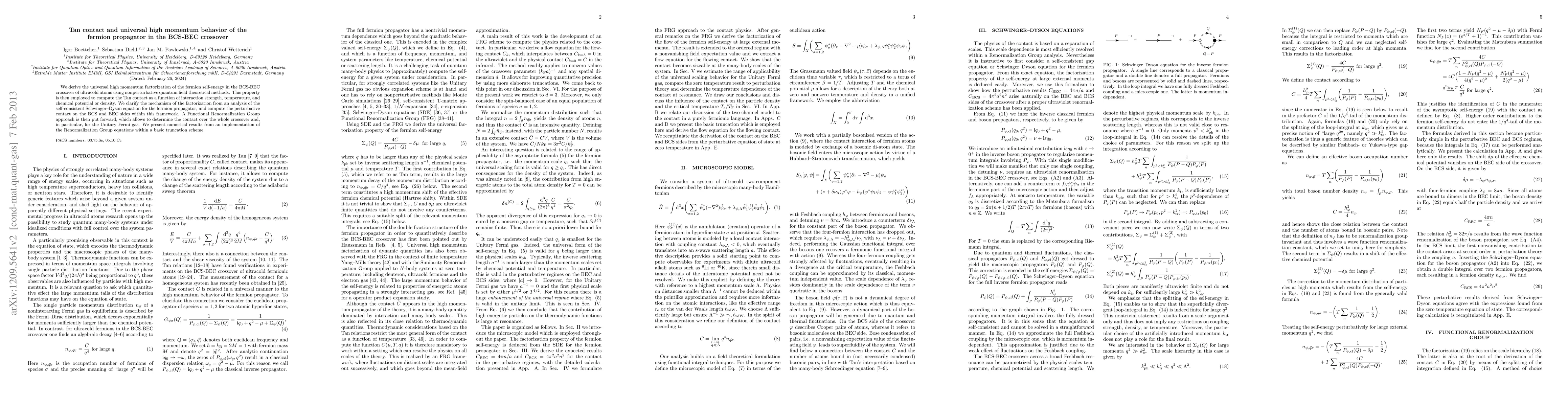 Researchers derived a universal high momentum factorization of the fermion self-energy in the BCS-BEC crossover using quantum field theory, enabling calculations of the Tan contact as a function of interaction strength, temperature, and Fermi momentum.