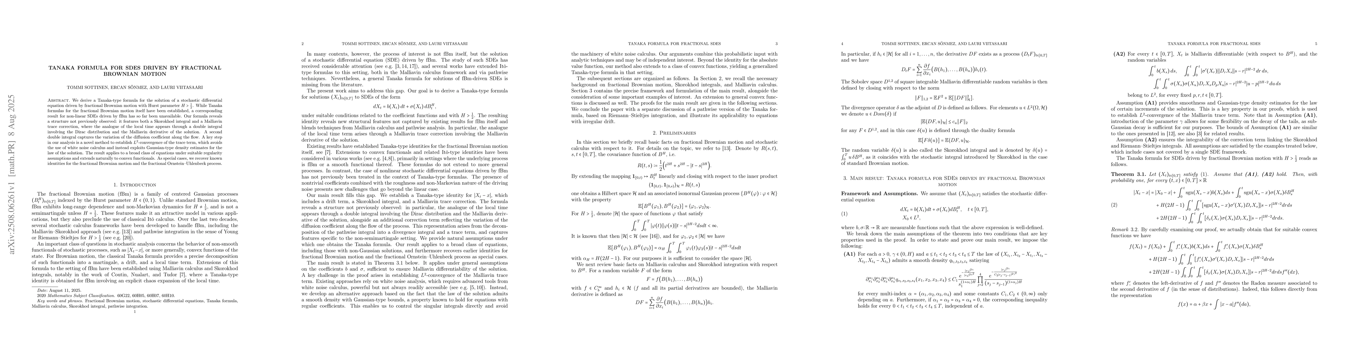 We derive a Tanaka-type formula for the solution of a stochastic differential equation (SDE) driven by fractional Brownian motion (fBm) with Hurst parameter $H > \frac{1}{2}$. While Tanaka formulas for the fractional Brownian motion itself have been established, a corresponding result for non-linear SDEs driven by fBm has so far been unavailable. Our formula reveals a structure not previously observed: it features both a Skorokhod integral and a Malliavin trace correction, where the analogue of the local time appears through a double integral involving the Dirac distribution and the Malliavin derivative of the solution. A second double integral captures the variation of the diffusion coefficient along the flow. A key step in our analysis is a novel method to establish $L^2$-convergence of the trace term, which avoids the use of white noise calculus and instead exploits Gaussian-type density estimates for the law of the solution. The result applies to a broad class of equations under suitable regularity assumptions and extends naturally to convex functionals. As special cases, we recover known identities for the fractional Brownian motion and the fractional Ornstein--Uhlenbeck process.