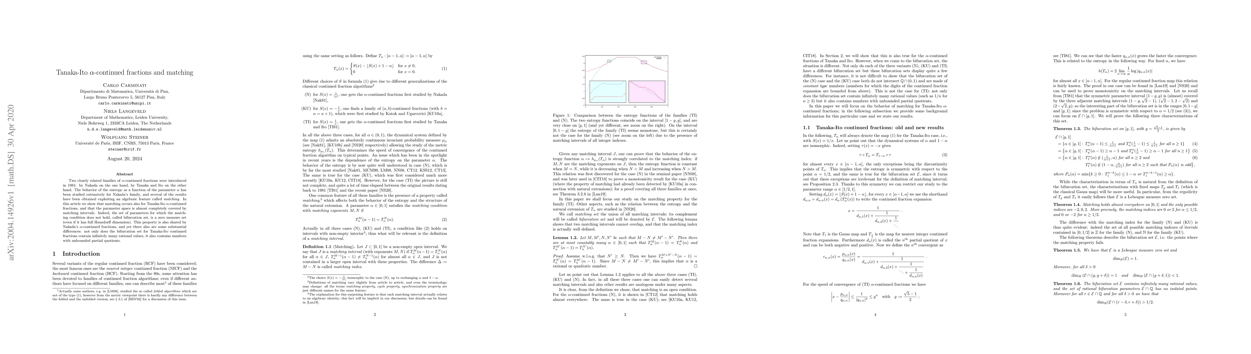 Two closely related families of ${\alpha}$-continued fractions were introduced in 1981: by Nakada on the one hand, by Tanaka and Ito on the other hand. The behavior of the entropy as a function of the parameter ${\alpha}$ has been studied extensively for Nakada's family, and several of the results have been obtained exploiting an algebraic feature called matching. In this article we show that matching occurs also for Tanaka-Ito ${\alpha}$-continued fractions, and that the parameter space is almost completely covered by matching intervals. Indeed, the set of parameters for which the matching condition does not hold, called bifurcation set, is a zero measure set (even if it has full Hausdorff dimension). This property is also shared by Nakada's ${\alpha}$-continued fractions, and yet there also are some substantial differences: not only does the bifurcation set for Tanaka-Ito continued fractions contain infinitely many rational values, it also contains numbers with unbounded partial quotients.