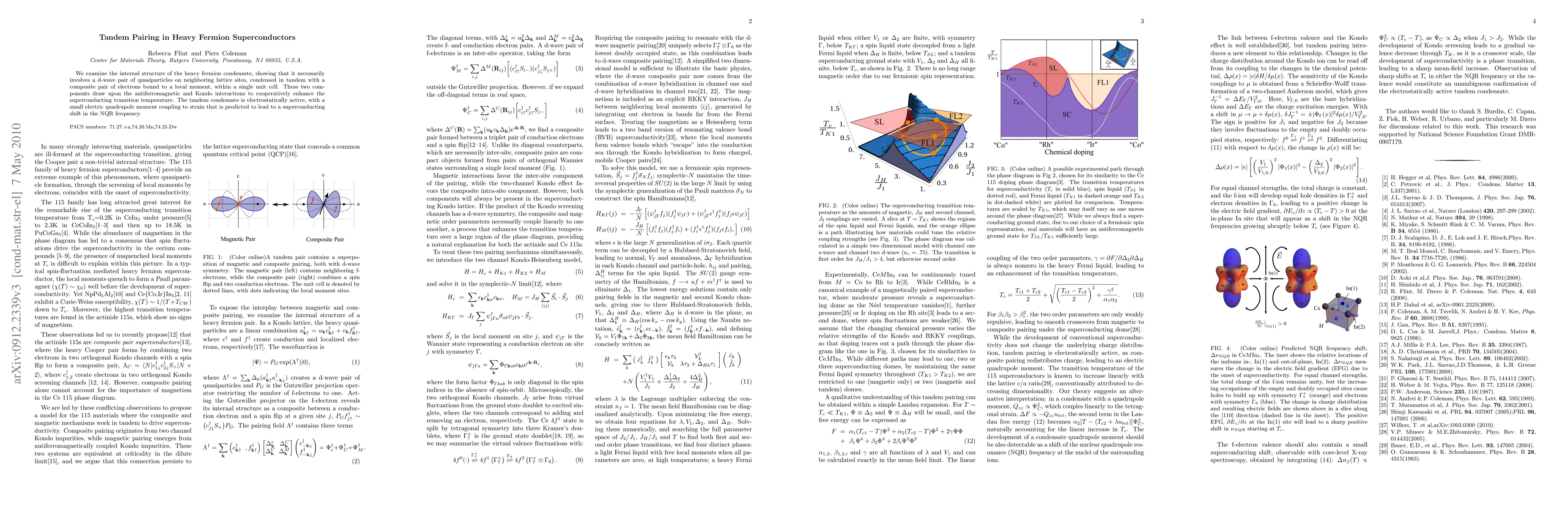 We examine the internal structure of the heavy fermion condensate, showing that it necessarily involves a d-wave pair of quasiparticles on neighboring lattice sites, condensed in tandem with a composite pair of electrons bound to a local moment, within a single unit cell. These two components draw upon the antiferromagnetic and Kondo interactions to cooperatively enhance the superconducting transition temperature. The tandem condensate is electrostatically active, with a small electric quadrupole moment coupling to strain that is predicted to lead to a superconducting shift in the NQR frequency.