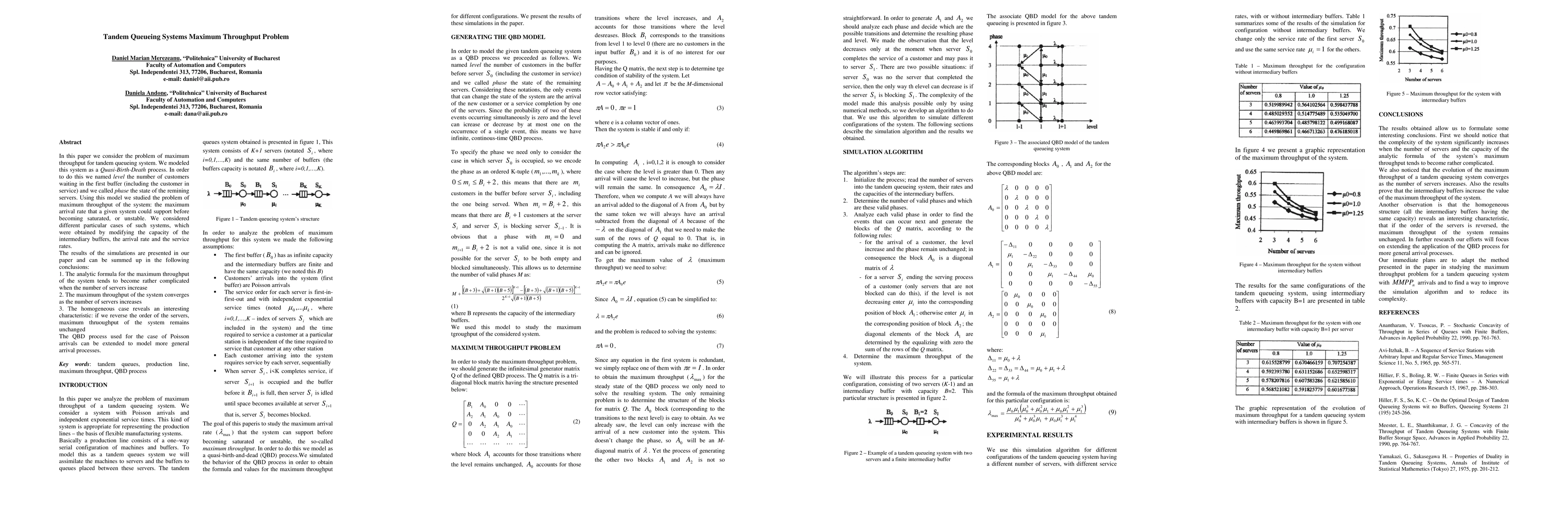 This paper investigates the maximum throughput problem in tandem queueing systems modeled as Quasi-Birth-Death processes. It finds that while the analytic formula for maximum throughput becomes complex with more servers, the throughput converges as the number of servers increases, and reversing server order in the homogeneous case does not affect throughput.
