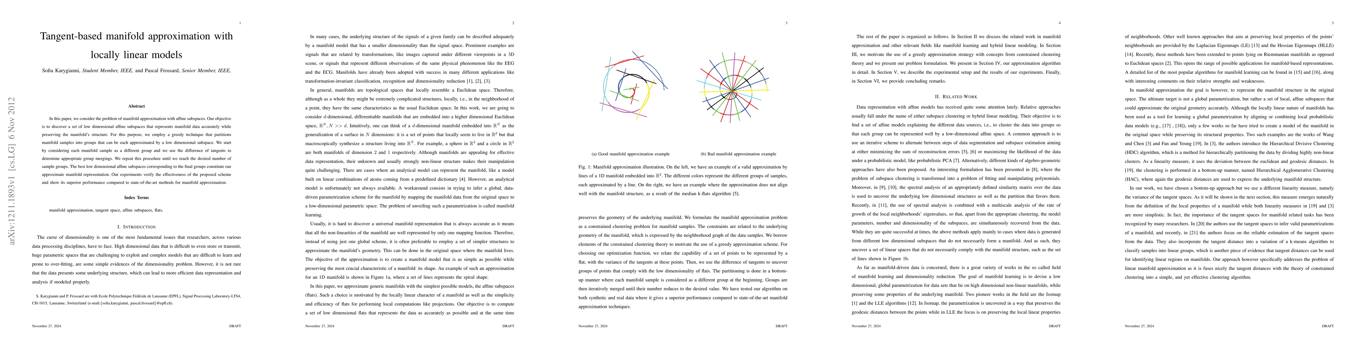 A new method for approximating manifolds using locally linear models is proposed, which uses a greedy technique to partition manifold samples into groups that can be represented by low-dimensional subspaces.