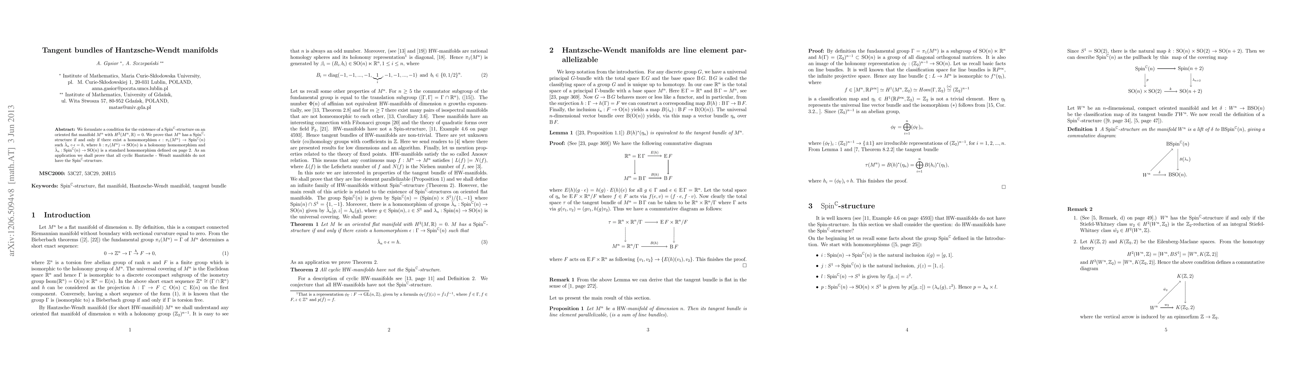 Summary: The paper establishes a criterion for the existence of a $Spin^C$ structure on oriented manifolds with zero second cohomology, and demonstrates that cyclic Hantzsche-Wendt manifolds lack such a structure.
