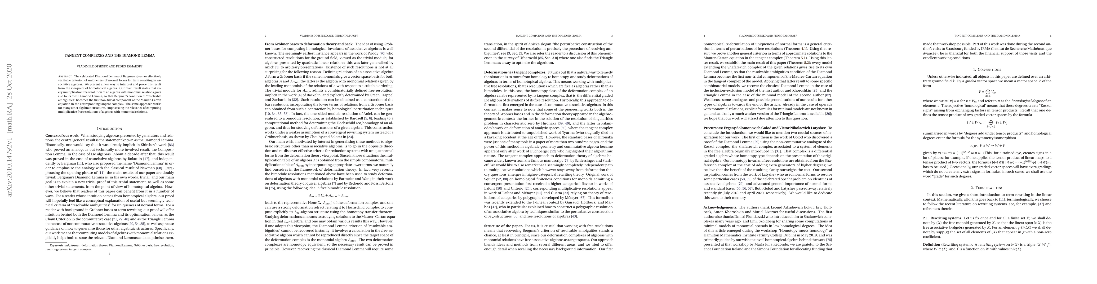 The celebrated Diamond Lemma of Bergman gives an effectively verifiable criterion of uniqueness of normal forms for term rewriting in associative algebras. We present a new way to interpret and prove this result from the viewpoint of homotopical algebra. Our main result states that every multiplicative free resolution of an algebra with monomial relations gives rise to its own Diamond Lemma, so that Bergman's condition of "resolvable ambiguities" becomes the first non-trivial component of the Maurer--Cartan equation in the corresponding tangent complex. The same approach works for many other algebraic structures, emphasizing the relevance of computing multiplicative free resolutions of algebras with monomial relations.