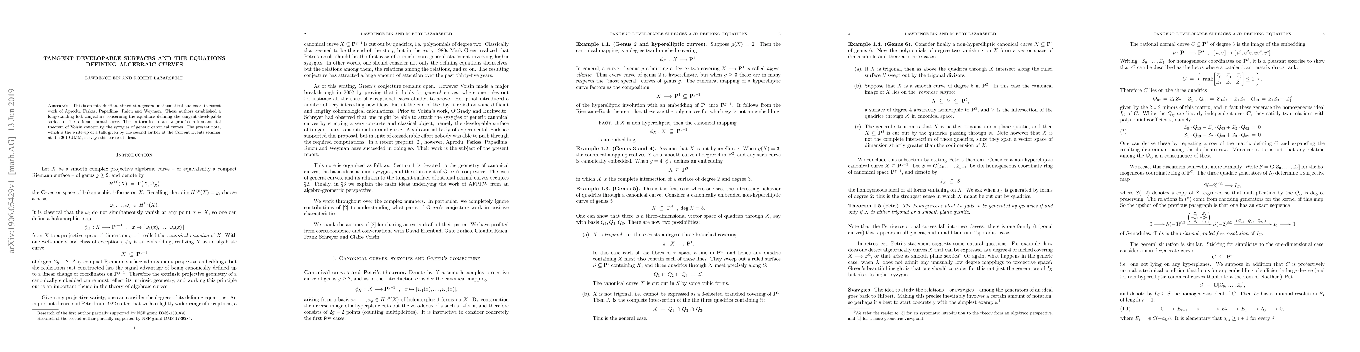 This paper introduces recent findings by Aprodu, Farkas, Papadima, Raicu, and Weyman that confirm a long-standing conjecture about the equations defining the tangent developable surface of a rational normal curve, leading to a new proof of Voisin's theorem on the syzygies of a general canonical curve. The work is presented in a talk given at the 2019 JMM's Current Events seminar.