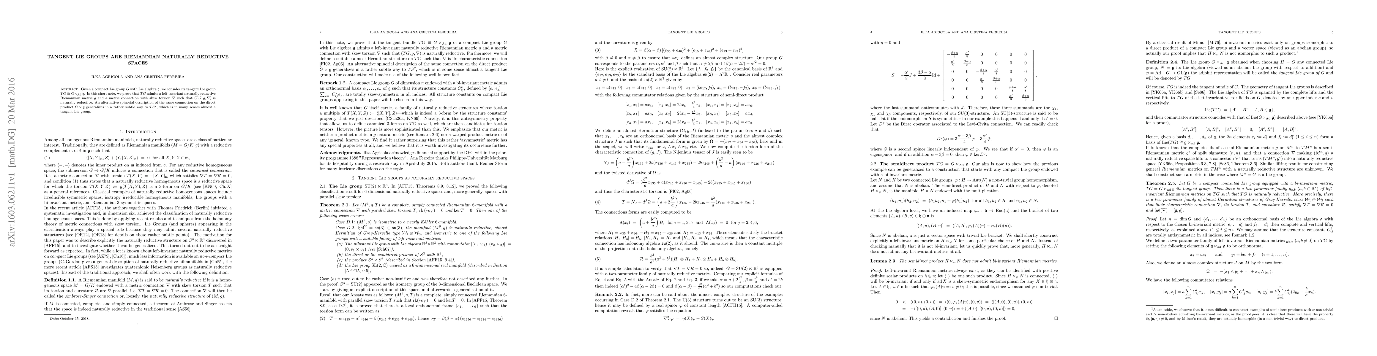 Given a compact Lie group $G$ with Lie algebra $\mathfrak{g}$, we consider its tangent Lie group $TG\cong G\ltimes_{\mathrm{Ad}} \mathfrak{g}$. In this short note, we prove that $TG$ admits a left-invariant naturally reductive Riemannian metric $g$ and a metric connection with skew torsion $\nabla$ such that $(TG,g,\nabla)$ is naturally reductive. An alternative spinorial description of the same connection on the direct product $G\times \mathfrak{g}$ generalizes in a rather subtle way to $TS^7$, which is in many senses almost a tangent Lie group.