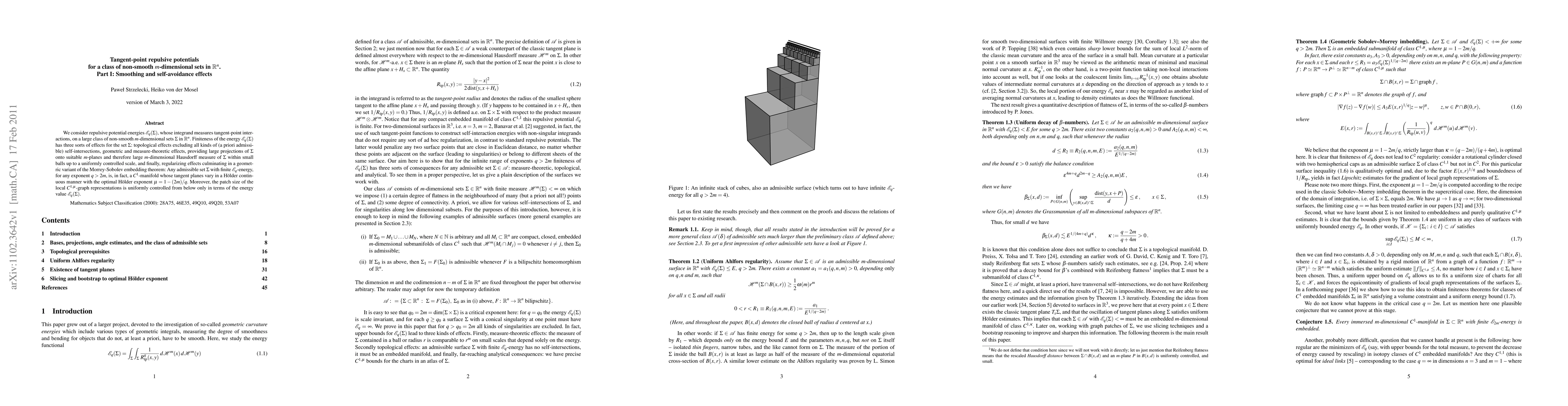 This paper explores repulsive potential energies on non-smooth m-dimensional sets in R^n, showing that finite energy leads to self-avoidance, geometric effects, and regularization, culminating in a Morrey-Sobolev embedding theorem for C^1-manifolds with controlled tangent planes.