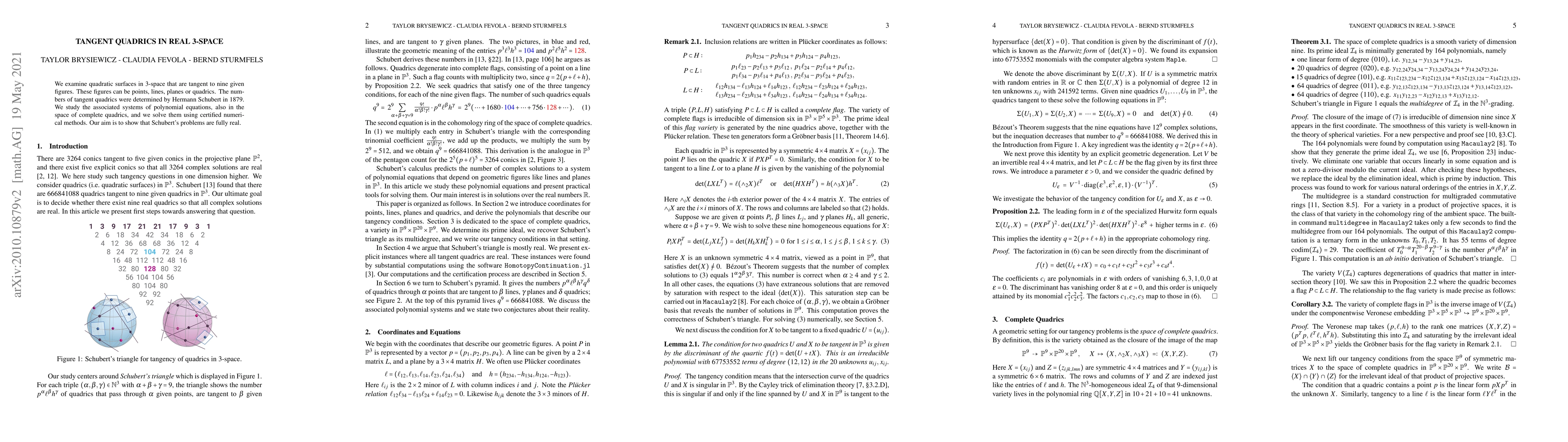 This paper investigates quadratic surfaces in 3-dimensional space that are tangent to nine specified geometric figures, solving the associated polynomial equations using certified numerical methods to demonstrate that Schubert's problems from 1879 are fully realizable.