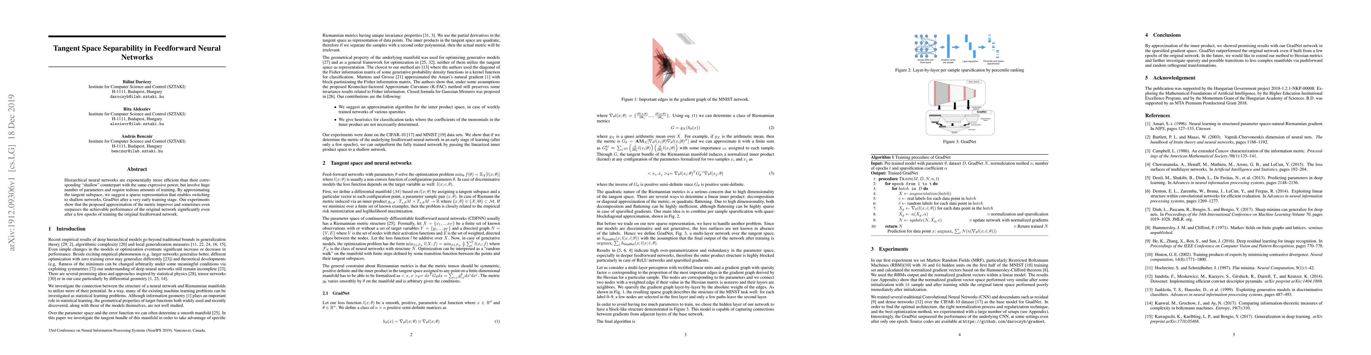 Hierarchical neural networks are exponentially more efficient than their corresponding "shallow" counterpart with the same expressive power, but involve huge number of parameters and require tedious amounts of training. By approximating the tangent subspace, we suggest a sparse representation that enables switching to shallow networks, GradNet after a very early training stage. Our experiments show that the proposed approximation of the metric improves and sometimes even surpasses the achievable performance of the original network significantly even after a few epochs of training the original feedforward network.