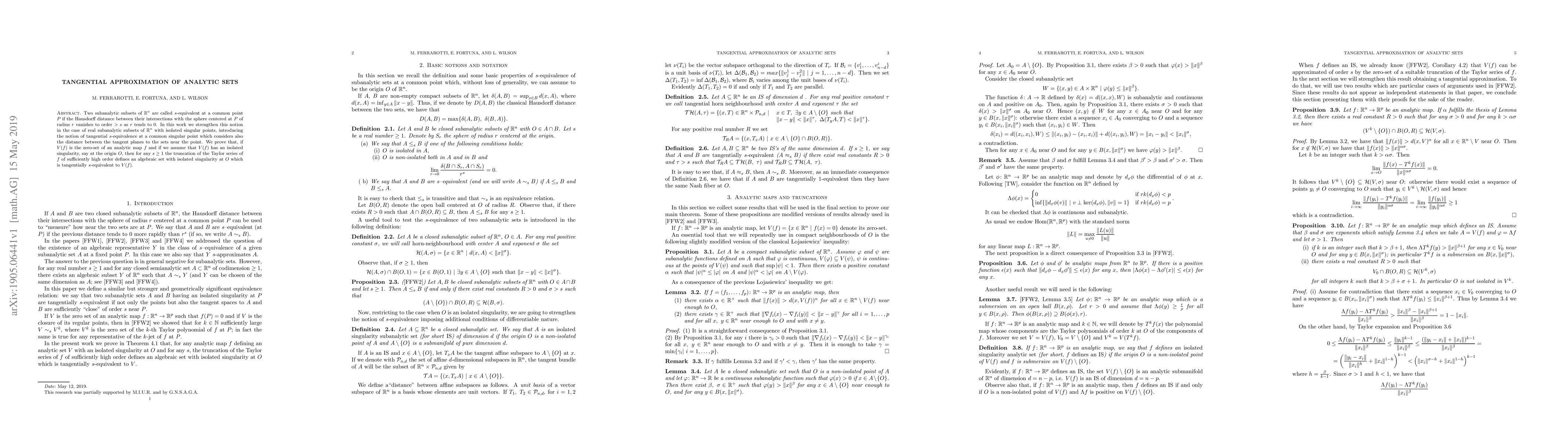 This paper introduces the concept of tangential $s$-equivalence for real subanalytic subsets with isolated singularities, considering both the Hausdorff distance and the distance between tangent planes. It proves that the truncation of the Taylor series of an analytic map with an isolated singularity defines an algebraic set that is tangentially $s$-equivalent to the original set.
