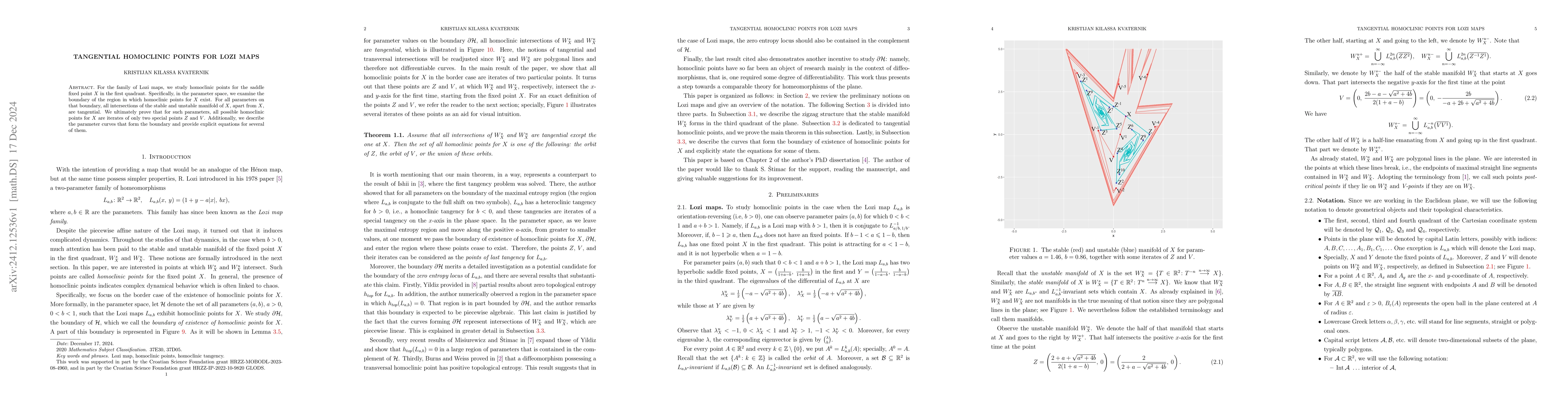 For the family of Lozi maps, we study homoclinic points for the saddle fixed point $X$ in the first quadrant. Specifically, in the parameter space, we examine the boundary of the region in which homoclinic points for $X$ exist. For all parameters on that boundary, all intersections of the stable and unstable manifold of $X$, apart from $X$, are tangential. We ultimately prove that for such parameters, all possible homoclinic points for $X$ are iterates of only two special points $Z$ and $V$. Additionally, we describe the parameter curves that form the boundary and provide explicit equations for several of them.