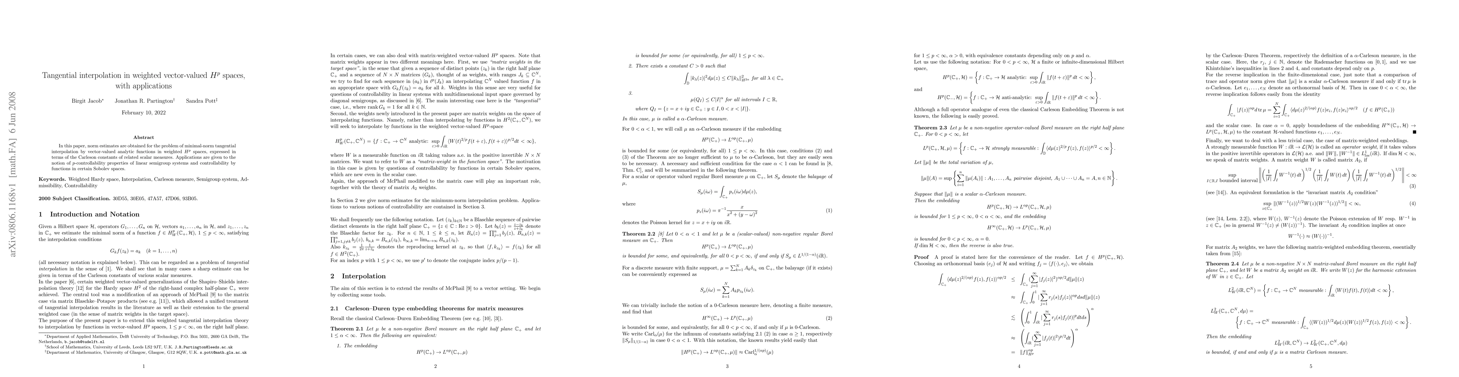 This paper provides norm estimates for minimal-norm tangential interpolation in weighted vector-valued H^p spaces, linking these estimates to Carleson constants. It also explores applications to p-controllability of linear semigroup systems and controllability via functions in specific Sobolev spaces.