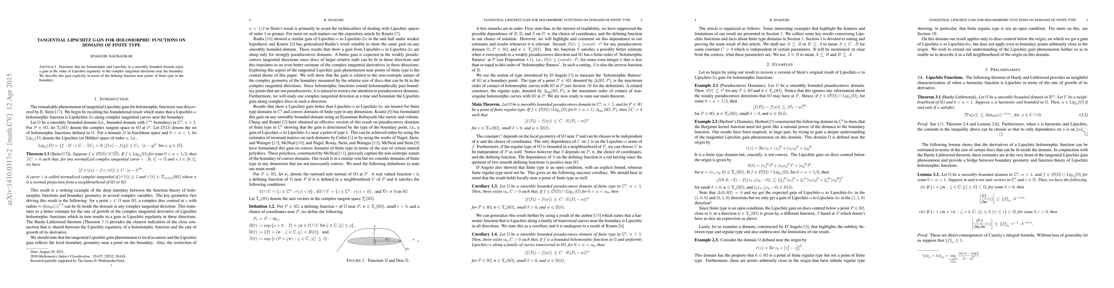 Summary: This paper investigates holomorphic functions that are also Lipschitz in smoothly bounded domains, revealing an enhanced Lipschitz regularity in complex tangential directions near the boundary. The authors explicitly quantify this tangential Lipschitz gain using the defining function at points of finite type on the boundary.