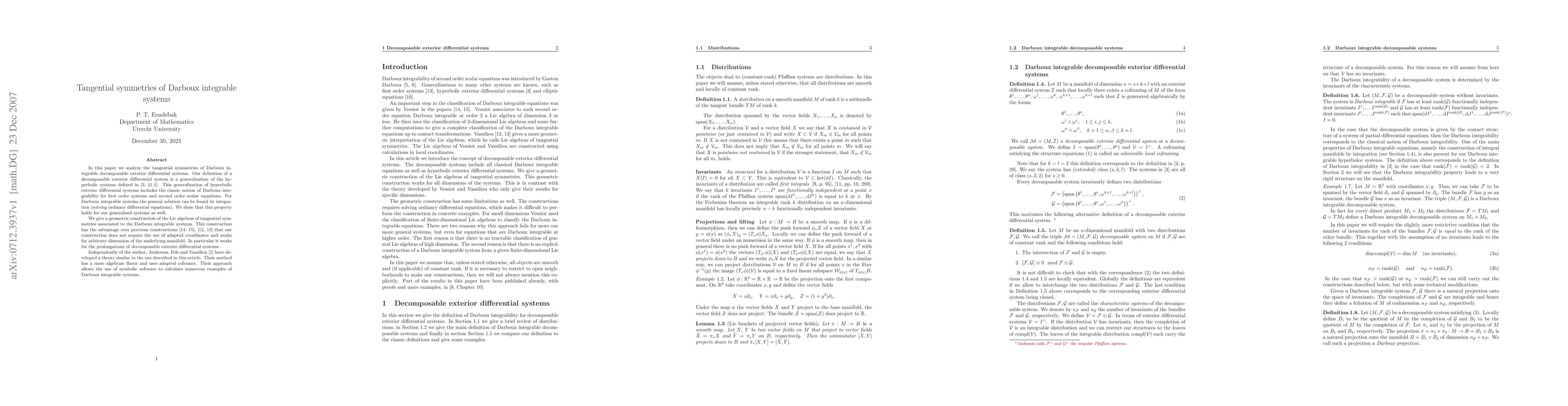 This paper investigates the tangential symmetries of Darboux integrable decomposable exterior differential systems, demonstrating that these systems retain the property of integrability through ordinary differential equations. It provides a novel geometric construction of the Lie algebras of tangential symmetries that avoids the need for adapted coordinates and is applicable to systems of any dimension.