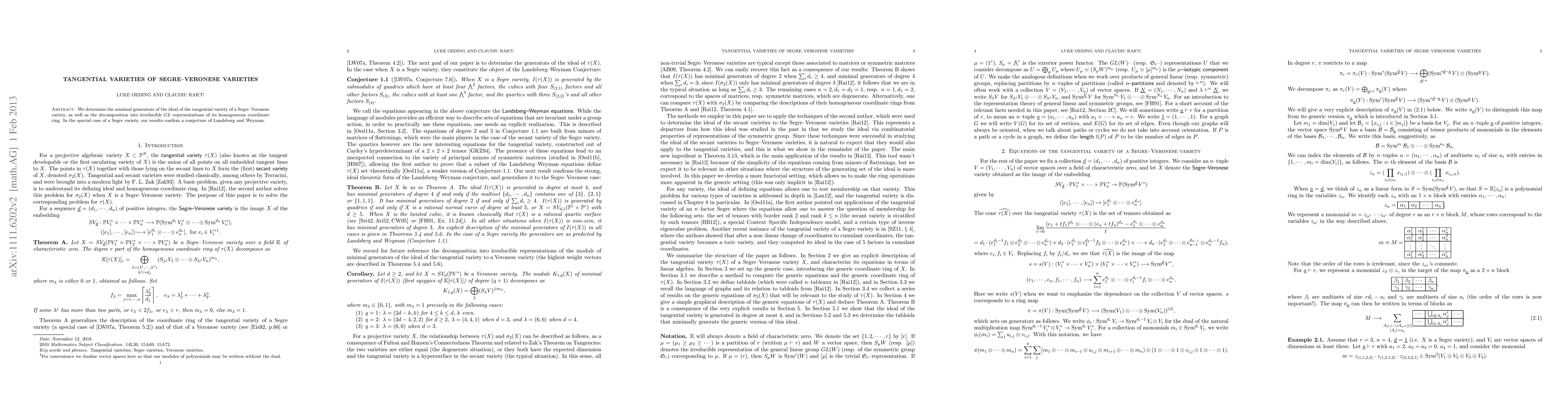 We determine the minimal generators of the ideal of the tangential variety of a Segre-Veronese variety, as well as the decomposition into irreducible GL-representations of its homogeneous coordinate ring. In the special case of a Segre variety, our results confirm a conjecture of Landsberg and Weyman.
