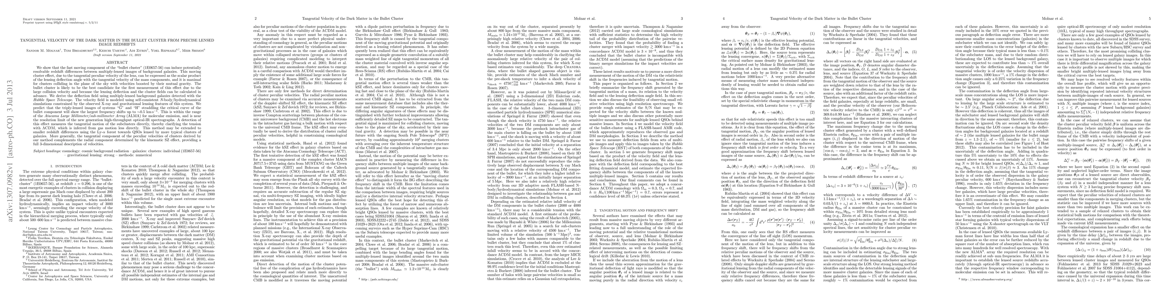 We show that the fast moving component of the "bullet cluster" (1E0657-56) can induce potentially resolvable redshift differences between multiply-lensed images of background galaxies. The moving cluster effect can be expressed as the scalar product of the lensing deflection angle with the tangential velocity of the mass components, and it is maximal for clusters colliding in the plane of the sky with velocities boosted by their mutual gravity. The bullet cluster is likely to be the best candidate for the first measurement of this effect due to the large collision velocity and because the lensing deflection and the cluster fields can be calculated in advance. We derive the deflection field using multiply-lensed background galaxies detected with the Hubble Space Telescope. The velocity field is modeled using self-consistent N-body/hydrodynamical simulations constrained by the observed X-ray and gravitational lensing features of this system. We predict that the triply-lensed images of systems "G" and "H" straddling the critical curve of the bullet component will show the largest frequency shifts up to ~0.5 km/sec. This is within the range of the Atacama Large Millimeter/sub-millimeter Array (ALMA) for molecular emission, and is near the resolution limit of the new generation high-throughput optical-IR spectrographs. A detection of this effect measures the tangential motion of the subclusters directly, thereby clarifying the tension with LCDM, which is inferred from gas motion less directly. This method may be extended to smaller redshift differences using the Ly-alpha forest towards QSOs lensed by more typical clusters of galaxies. More generally, the tangential component of the peculiar velocities of clusters derived by our method complements the radial component determined by the kinematic SZ effect, providing a full 3-dimensional description of velocities.