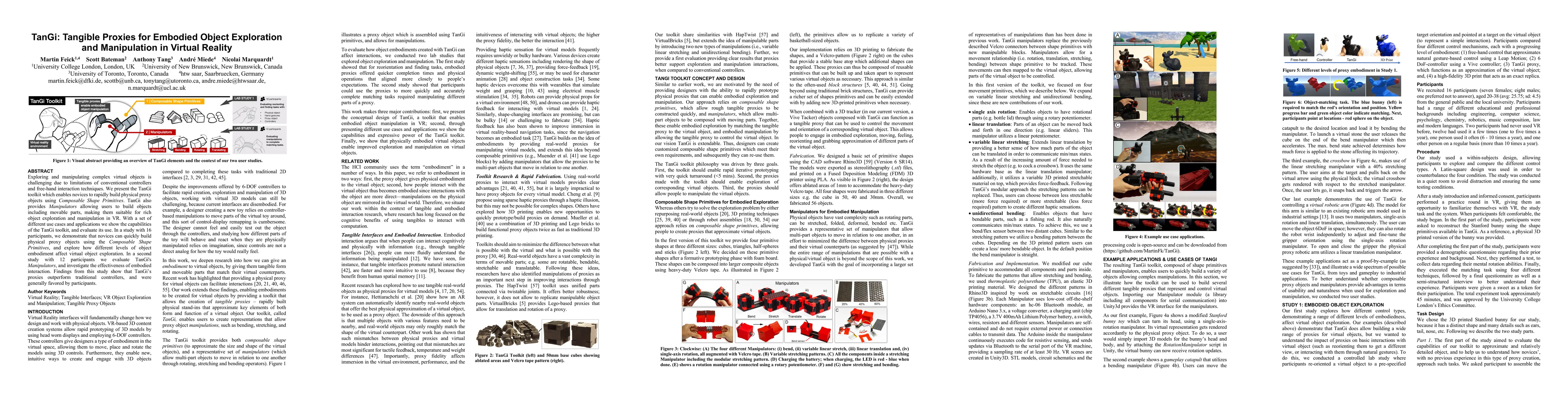 A new toolkit called TanGi enables novices to build physical proxy objects for virtual reality object exploration and manipulation, outperforming traditional controllers in studies with participants.