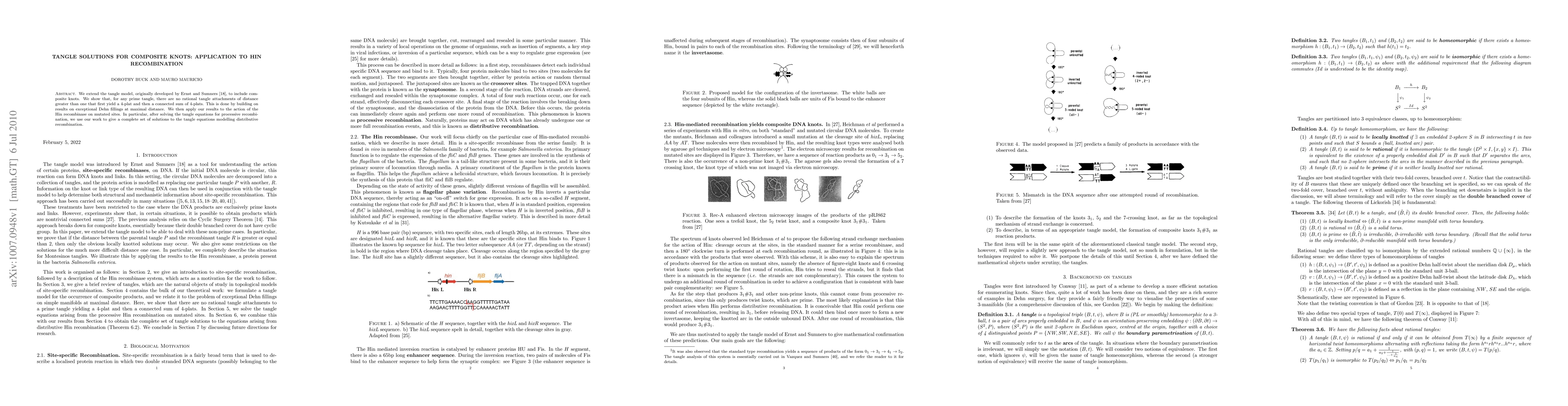 This paper extends the tangle model to composite knots and demonstrates that prime tangles do not yield 4-plats via rational tangle attachments beyond a certain distance. It applies these findings to Hin recombinase action, providing solutions to tangle equations modeling distributive recombination in mutated sites.