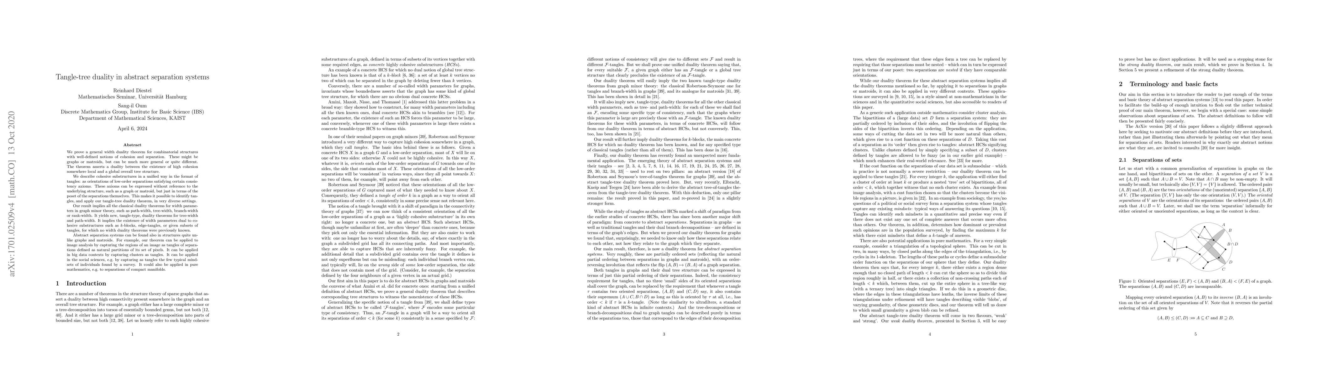 The paper proves a general width duality theorem for abstract separation systems, demonstrating a duality between local cohesiveness and global tree structures. It introduces tangles as cohesive substructures, applicable across diverse settings, and extends classical duality theorems to new contexts such as image analysis, big data clustering, and social sciences.