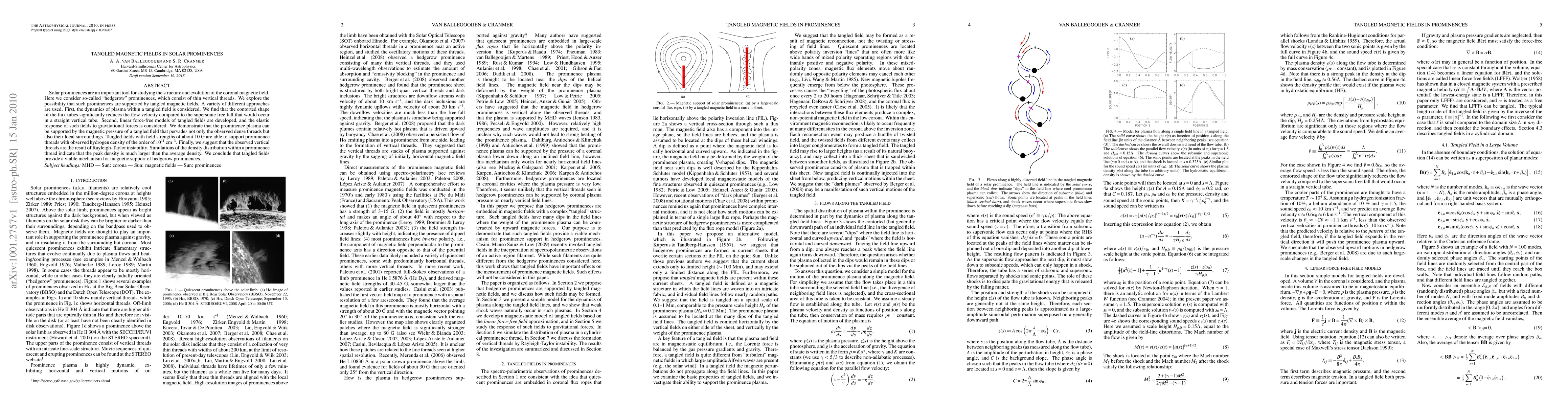 Solar prominences are an important tool for studying the structure and evolution of the coronal magnetic field. Here we consider so-called "hedgerow" prominences, which consist of thin vertical threads. We explore the possibility that such prominences are supported by tangled magnetic fields. A variety of different approaches are used. First, the dynamics of plasma within a tangled field is considered. We find that the contorted shape of the flux tubes significantly reduces the flow velocity compared to the supersonic free fall that would occur in a straight vertical tube. Second, linear force-free models of tangled fields are developed, and the elastic response of such fields to gravitational forces is considered. We demonstrate that the prominence plasma can be supported by the magnetic pressure of a tangled field that pervades not only the observed dense threads but also their local surroundings. Tangled fields with field strengths of about 10 G are able to support prominence threads with observed hydrogen density of the order of 10^(11) cm^(-3). Finally, we suggest that the observed vertical threads are the result of Rayleigh-Taylor instability. Simulations of the density distribution within a prominence thread indicate that the peak density is much larger than the average density. We conclude that tangled fields provide a viable mechanism for magnetic support of hedgerow prominences.
