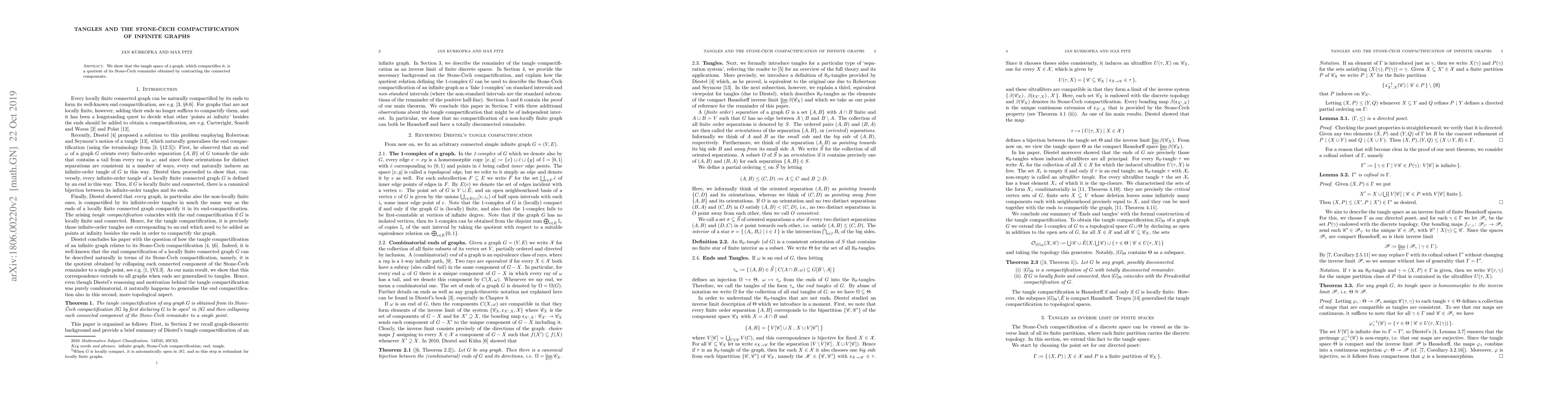 We show that the tangle space of a graph, which compactifies it, is a quotient of its Stone-\v{C}ech remainder obtained by contracting the connected components.