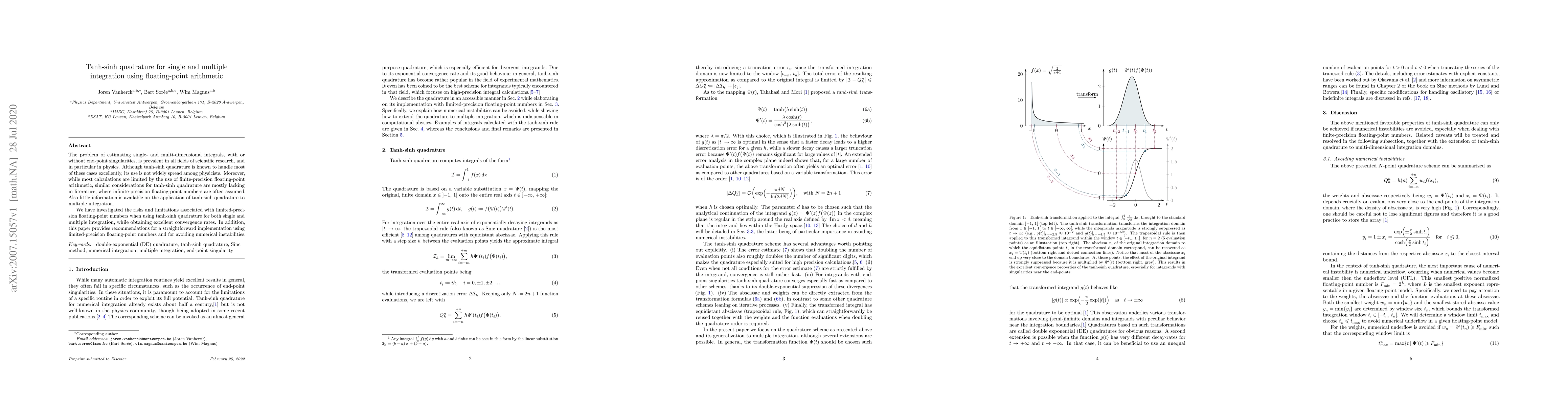 The paper investigates the application of tanh-sinh quadrature for single and multiple integration using finite-precision floating-point arithmetic, addressing numerical instabilities and providing recommendations for implementation.