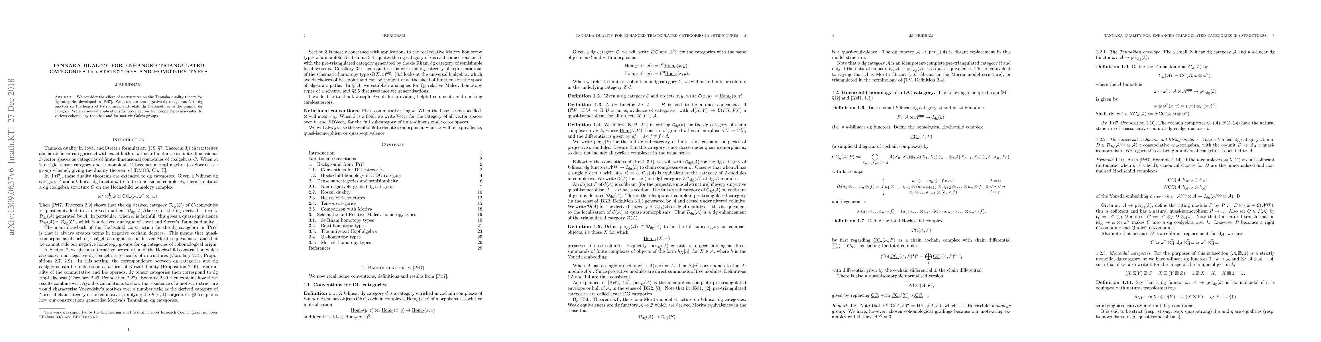 We consider the effect of $t$-structures on the Tannaka duality theory for dg categories developed in our previous paper. We associate non-negative dg coalgebras $C$ to dg functors on the hearts of $t$-structures, and relate dg $C$-comodules to the original dg category. We give several applications for pro-algebraic homotopy types associated to various cohomology theories, and for motivic Galois groups.