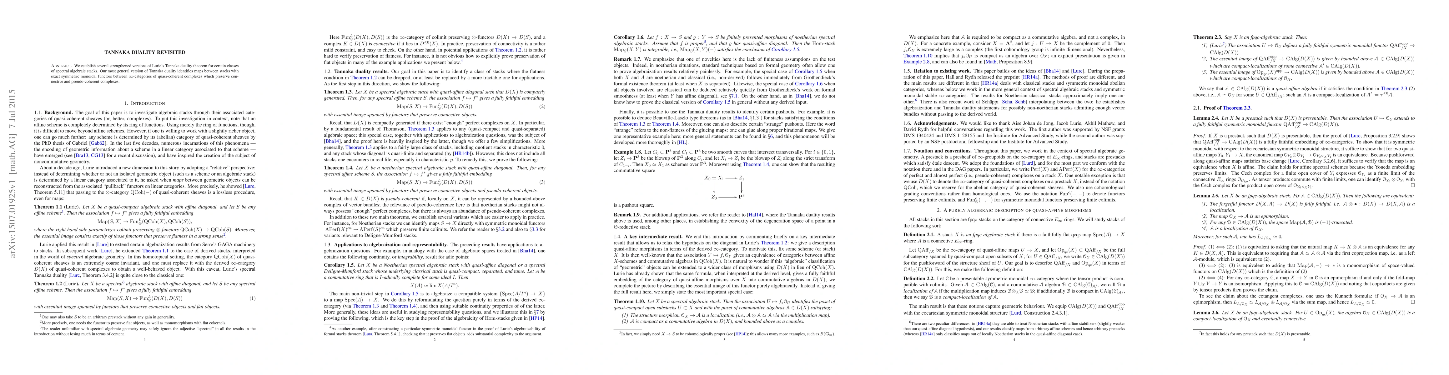 This paper strengthens Lurie's Tannaka duality theorem for spectral algebraic stacks by identifying maps between stacks with exact symmetric monoidal functors that preserve connective and pseudo-coherent complexes. It provides a general version linking these maps to $\infty$-categories of quasi-coherent complexes.