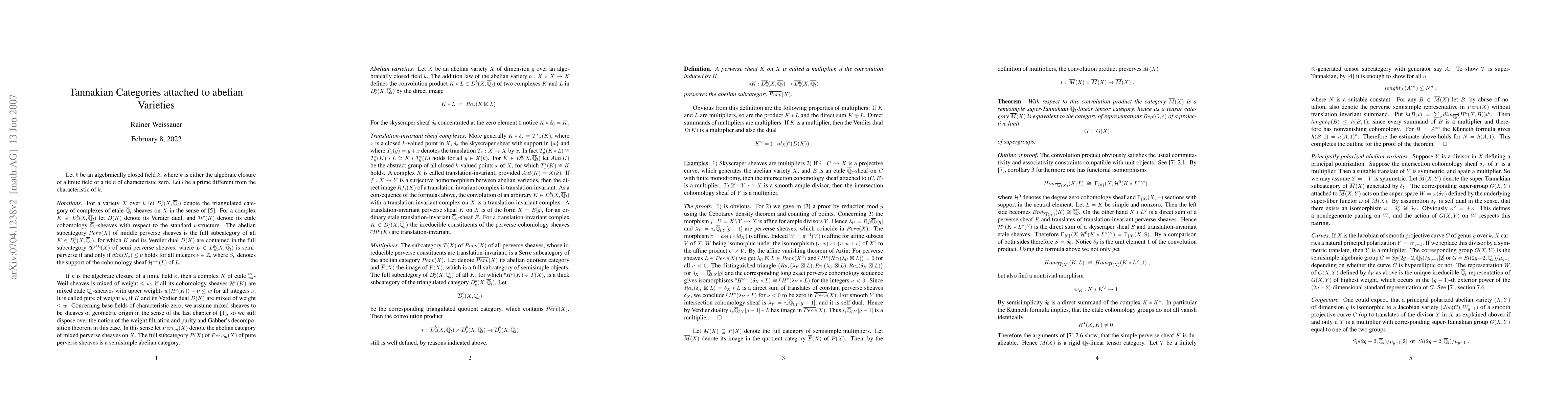 Starting from certain perverse sheaves on an abelian variety, including the intersection cohomology sheaves of curves and smooth ample divisors, we construct a semisimple super-Tannakian category.