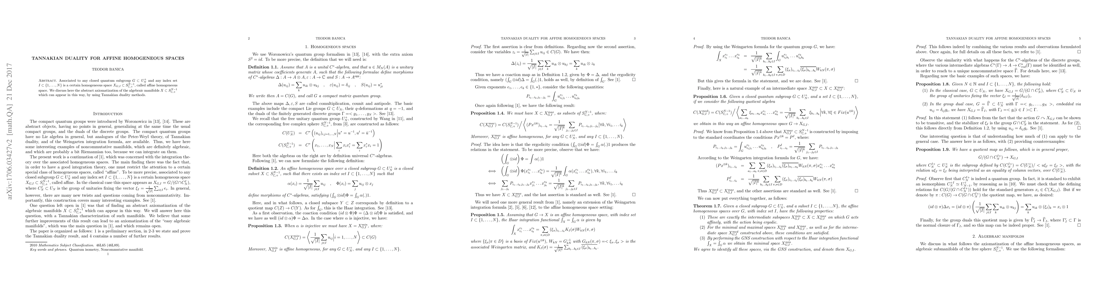 Associated to any closed quantum subgroup $G\subset U_N^+$ and any index set $I\subset\{1,\ldots,N\}$ is a certain homogeneous space $X_{G,I}\subset S^{N-1}_{\mathbb C,+}$, called affine homogeneous space. We discuss here the abstract axiomatization of the algebraic manifolds $X\subset S^{N-1}_{\mathbb C,+}$ which can appear in this way, by using Tannakian duality methods.