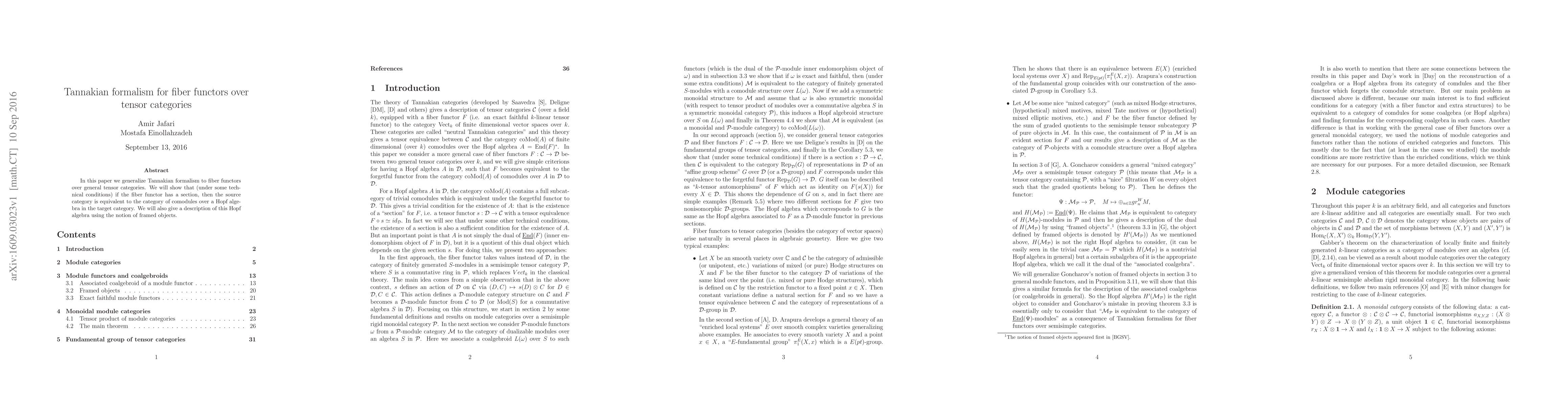 This paper generalizes Tannakian formalism to tensor categories, demonstrating that a fiber functor with a section implies equivalence to the category of comodules over a Hopf algebra, described via framed objects. The technical conditions and detailed constructions are provided for this equivalence.