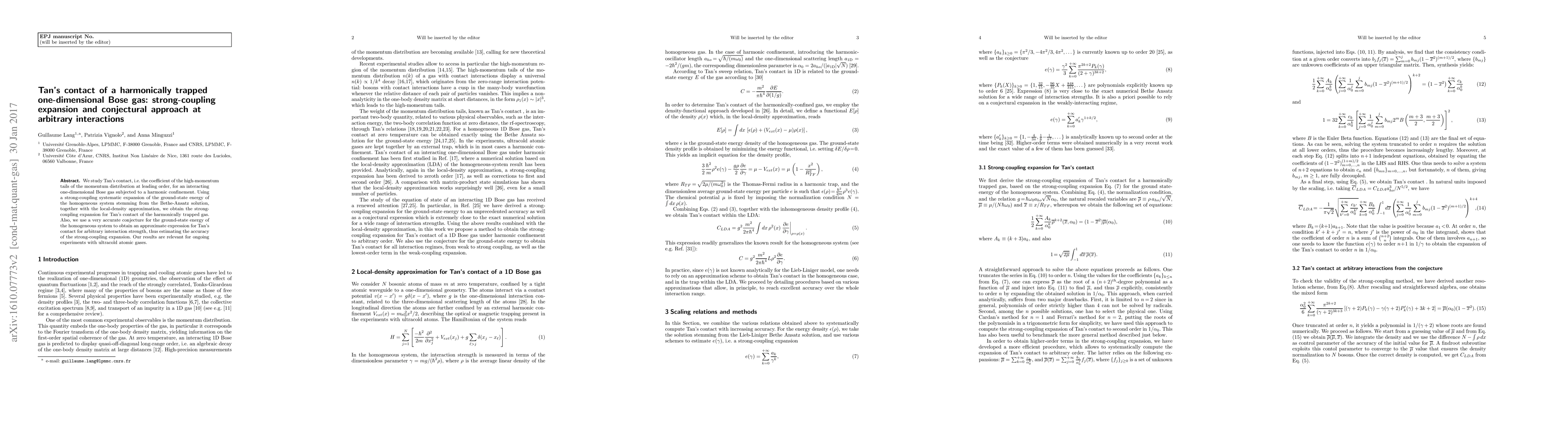 We study Tan's contact, i.e. the coefficient of the high-momentum tails of the momentum distribution at leading order, for an interacting one-dimensional Bose gas subjected to a harmonic confinement. Using a strong-coupling systematic expansion of the ground-state energy of the homogeneous system stemming from the Bethe-Ansatz solution, together with the local-density approximation, we obtain the strong-coupling expansion for Tan's contact of the harmonically trapped gas. Also, we use a very accurate conjecture for the ground-state energy of the homogeneous system to obtain an approximate expression for Tan's contact for arbitrary interaction strength, thus estimating the accuracy of the strong-coupling expansion. Our results are relevant for ongoing experiments with ultracold atomic gases.