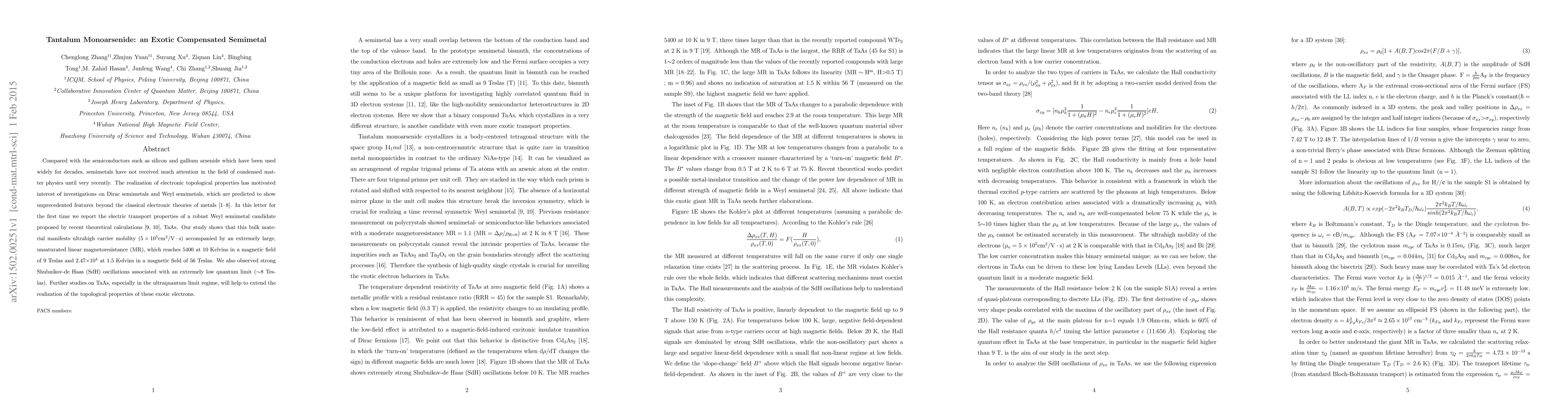 This paper reports the electric transport properties of tantalum monoarsenide (TaAs), a proposed Weyl semimetal, revealing ultrahigh carrier mobility and large, unsaturated linear magnetoresistance. The study highlights strong Shubnikov-de Haas oscillations and suggests that further research could enhance the understanding of topological properties in exotic materials.