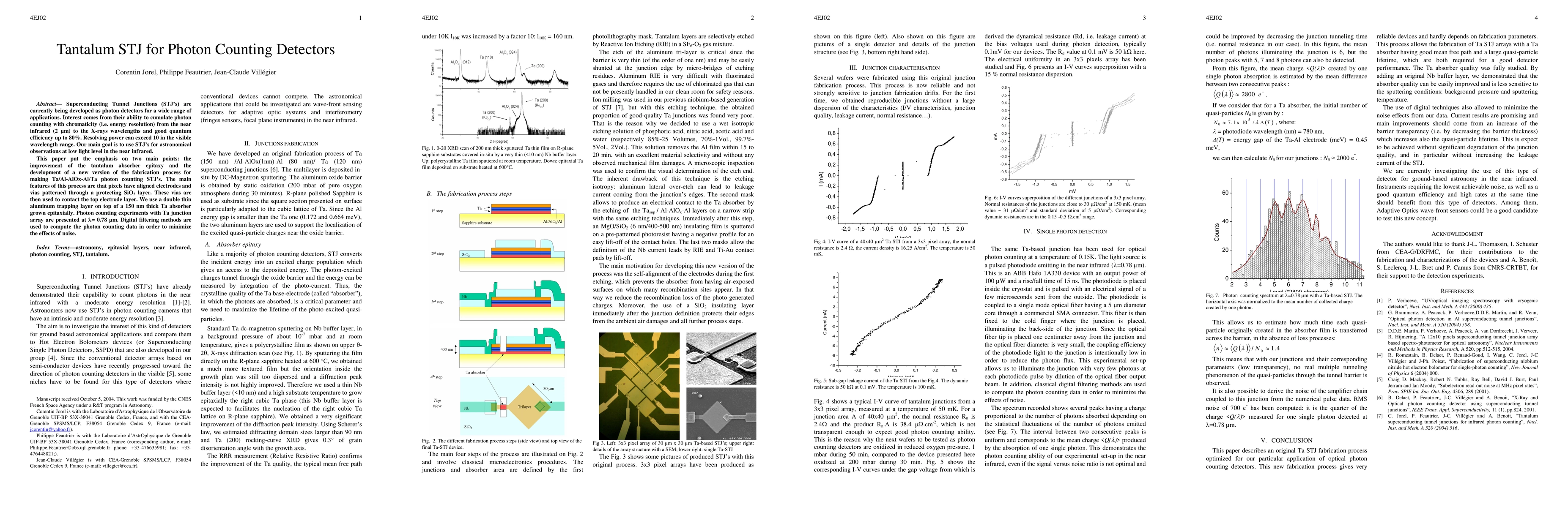 This paper details advancements in tantalum Superconducting Tunnel Junction (STJ) fabrication for photon counting detectors, emphasizing improved epitaxy of tantalum absorbers and a new fabrication process with aligned pixel electrodes. Photon counting experiments at 0.78 μm wavelength demonstrate the effectiveness of the double thin aluminum trapping layer on a 150 nm thick Ta absorber, grown epitaxially, and digital filtering methods are employed to reduce noise in data.