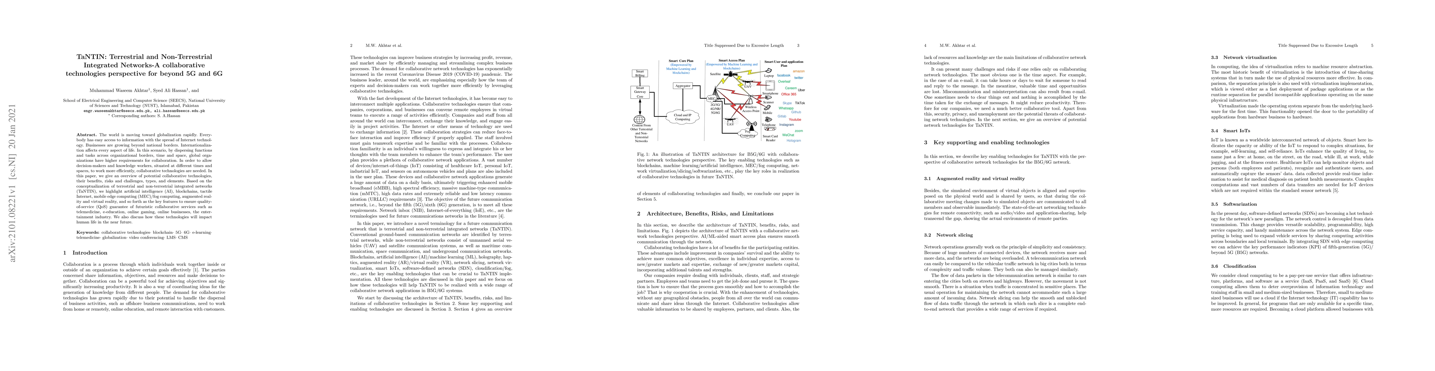 This paper introduces TaNTIN, a collaborative technologies framework for beyond 5G and 6G networks, highlighting key features like AI, blockchain, and AR/VR to ensure quality-of-service guarantees for futuristic collaborative services.