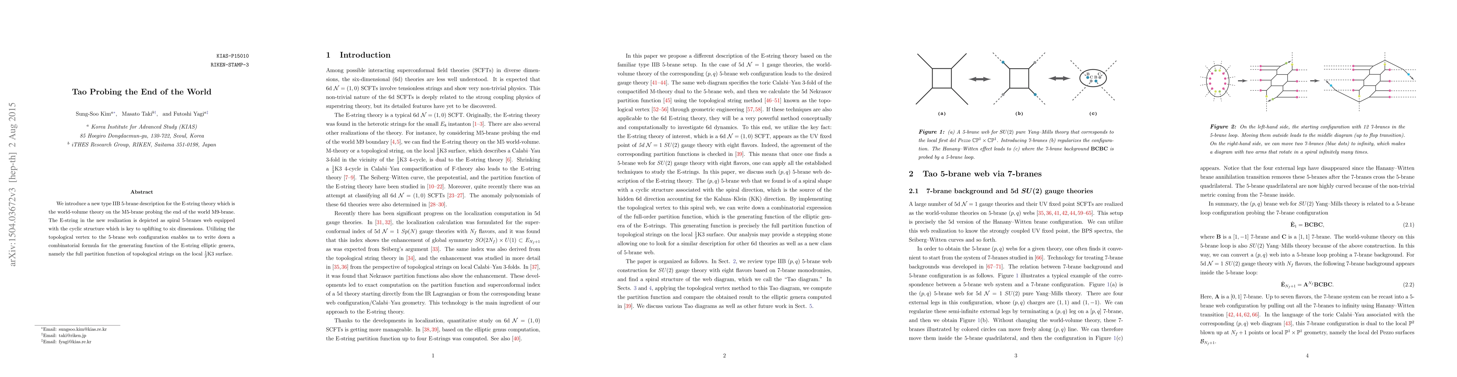 We introduce a new type IIB 5-brane description for the E-string theory which is the world-volume theory on the M5-brane probing the end of the world M9-brane. The E-string in the new realization is depicted as spiral 5-branes web equipped with the cyclic structure which is key to uplifting to six dimensions. Utilizing the topological vertex to the 5-brane web configuration enables us to write down a combinatorial formula for the generating function of the E-string elliptic genera, namely the full partition function of topological strings on the local 1/2 K3 surface.