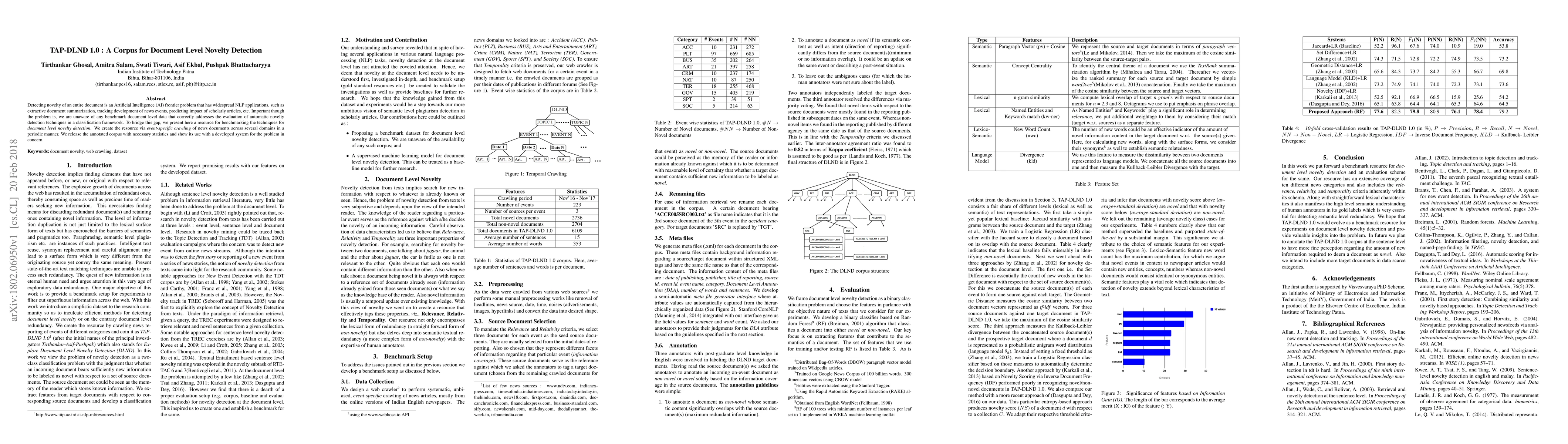 A new corpus called TAP-DLND 1.0 is introduced for benchmarking document-level novelty detection techniques, addressing a long-standing AI problem in NLP. The corpus provides a valuable resource for evaluating automatic novelty detection systems in various domains.