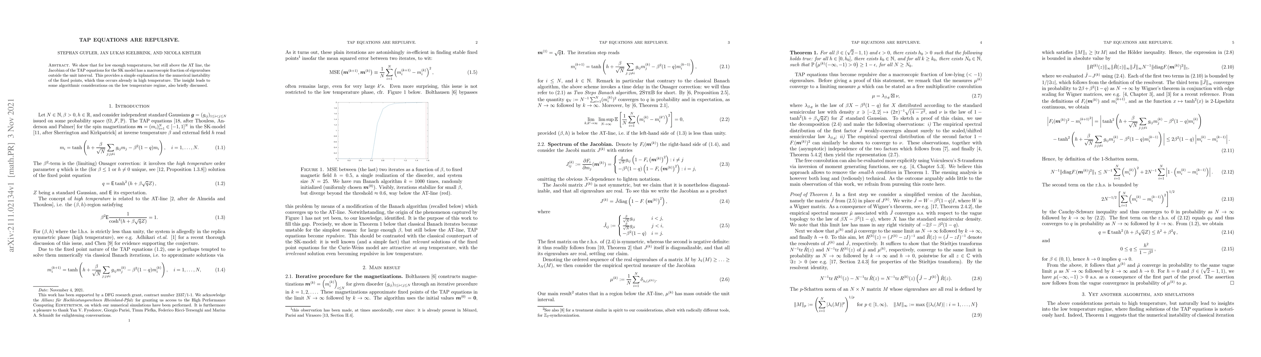 We show that for low enough temperatures, but still above the AT line, the Jacobian of the TAP equations for the SK model has a macroscopic fraction of eigenvalues outside the unit interval. This provides a simple explanation for the numerical instability of the fixed points, which thus occurs already in high temperature. The insight leads to some algorithmic considerations on the low temperature regime, also briefly discussed.