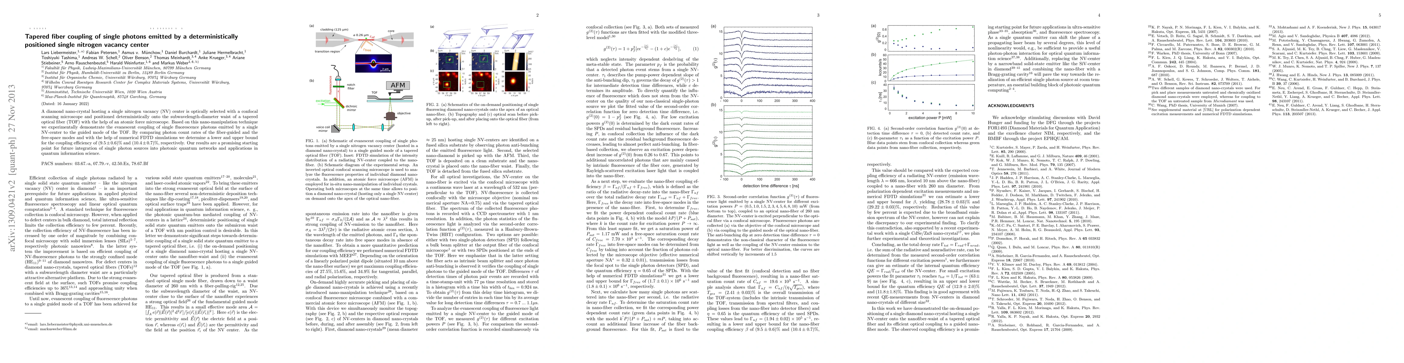 This paper demonstrates the deterministic positioning of a single nitrogen vacancy center in a diamond nano-crystal onto a tapered optical fiber, achieving efficient evanescent coupling of single photons emitted by the NV center to the fiber's guided mode, with coupling efficiencies ranging from 9.5% to 10.4%. This technique holds potential for integrating single photon sources into quantum networks.