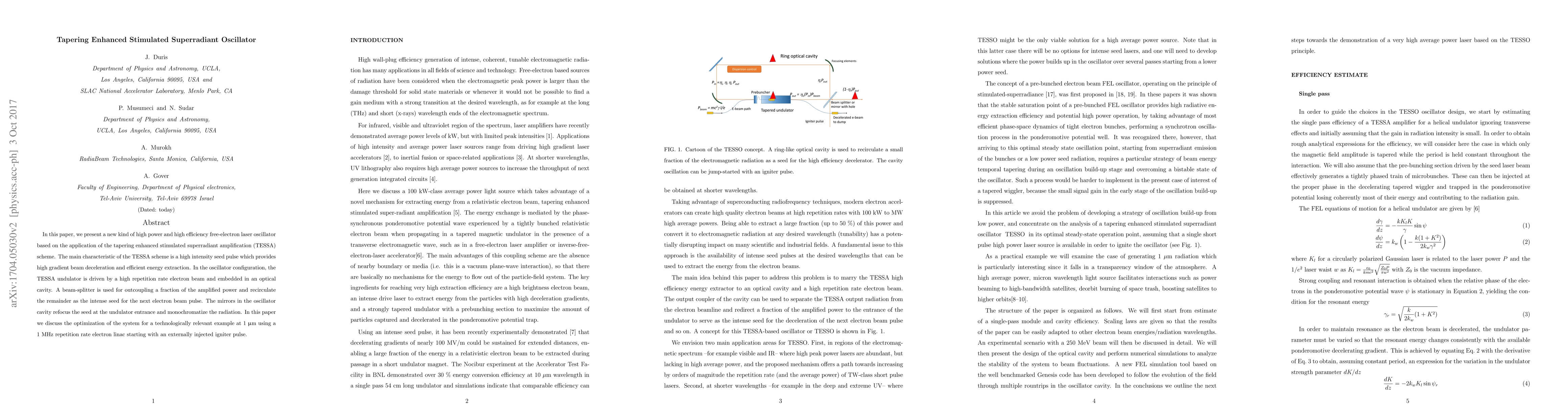 This paper introduces a high power, high efficiency free-electron laser oscillator utilizing the tapering enhanced stimulated superradiant amplification (TESSA) scheme, featuring a high intensity seed pulse for beam deceleration and energy extraction. The system optimizes a 1 MHz repetition rate electron linac for a 1 µm wavelength, using a beam-splitter to outcouple amplified power and recirculate the seed for subsequent pulses.