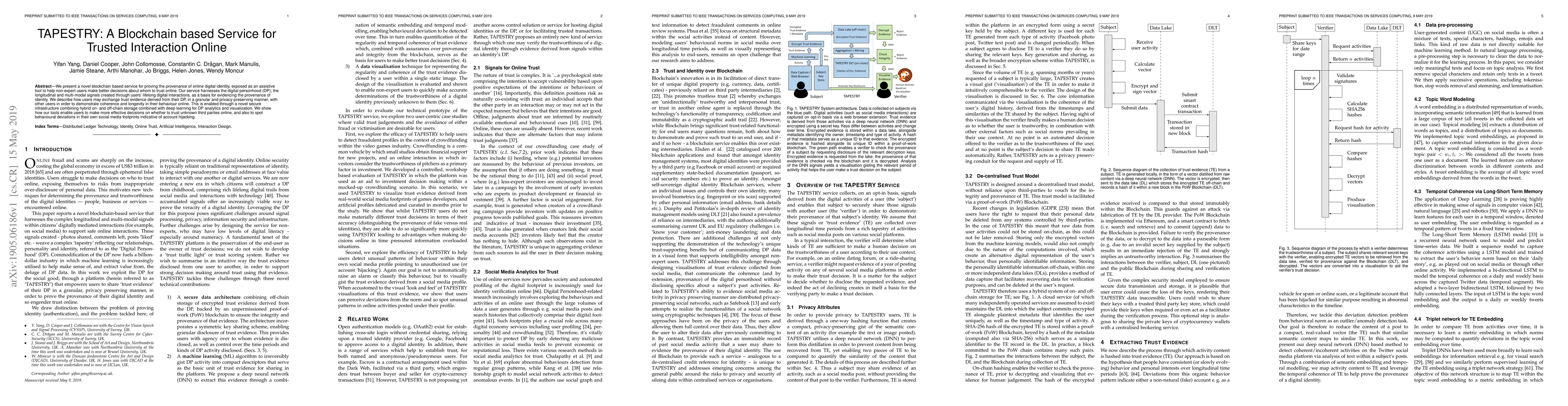 We present a novel blockchain based service for proving the provenance of online digital identity, exposed as an assistive tool to help non-expert users make better decisions about whom to trust online. Our service harnesses the digital personhood (DP); the longitudinal and multi-modal signals created through users' lifelong digital interactions, as a basis for evidencing the provenance of identity. We describe how users may exchange trust evidence derived from their DP, in a granular and privacy-preserving manner, with other users in order to demonstrate coherence and longevity in their behaviour online. This is enabled through a novel secure infrastructure combining hybrid on- and off-chain storage combined with deep learning for DP analytics and visualization. We show how our tools enable users to make more effective decisions on whether to trust unknown third parties online, and also to spot behavioural deviations in their own social media footprints indicative of account hijacking.