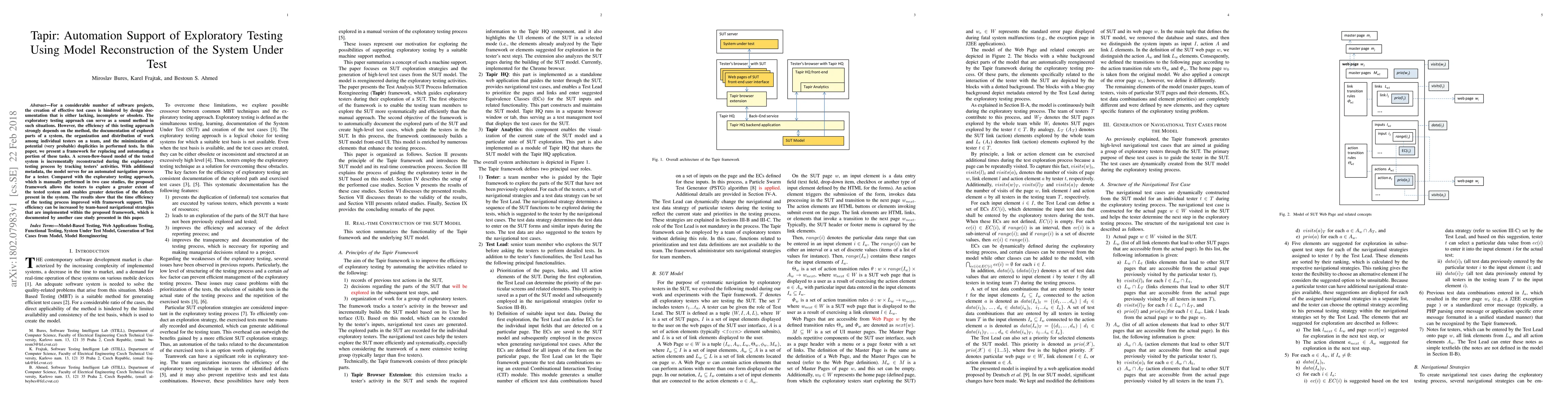This paper introduces a framework called Tapir that automates exploratory testing by reconstructing a model of the system under test based on testers' activities. The framework enhances test coverage and defect detection while improving the time efficiency of the testing process, as demonstrated through case studies.