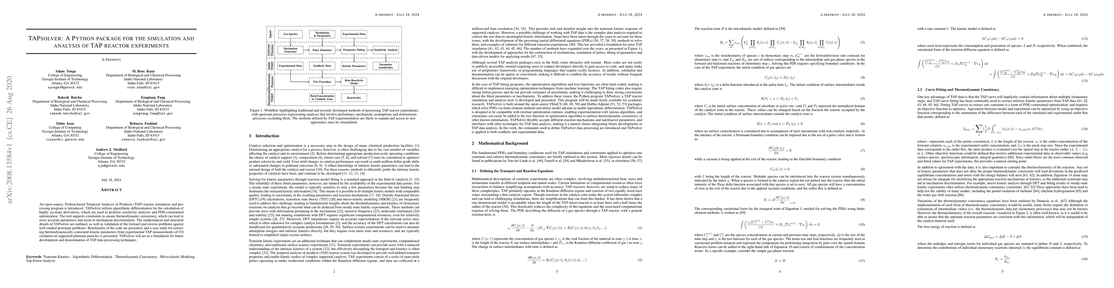 TAPsolver is an open-source Python package for simulating and analyzing TAP reactor experiments, employing algorithmic differentiation for precise derivative calculations. It supports thermodynamically consistent constraints and is validated through benchmark studies and a case study on CO oxidation kinetics.