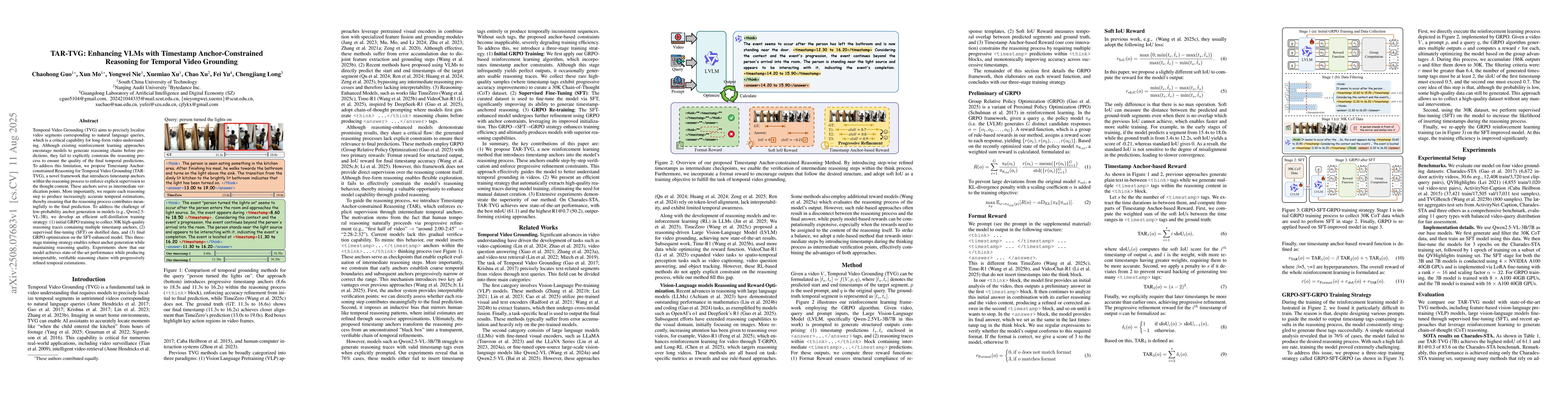 The research introduces TAR-TVG, a Timestamp Anchor-constrained Reasoning framework for Temporal Video Grounding, which uses a progressive, step-by-step timestamp refinement mechanism for increasingly accurate predictions. It employs a three-stage training strategy: initial GRPO training, supervised fine-tuning (SFT), and final GRPO optimization.