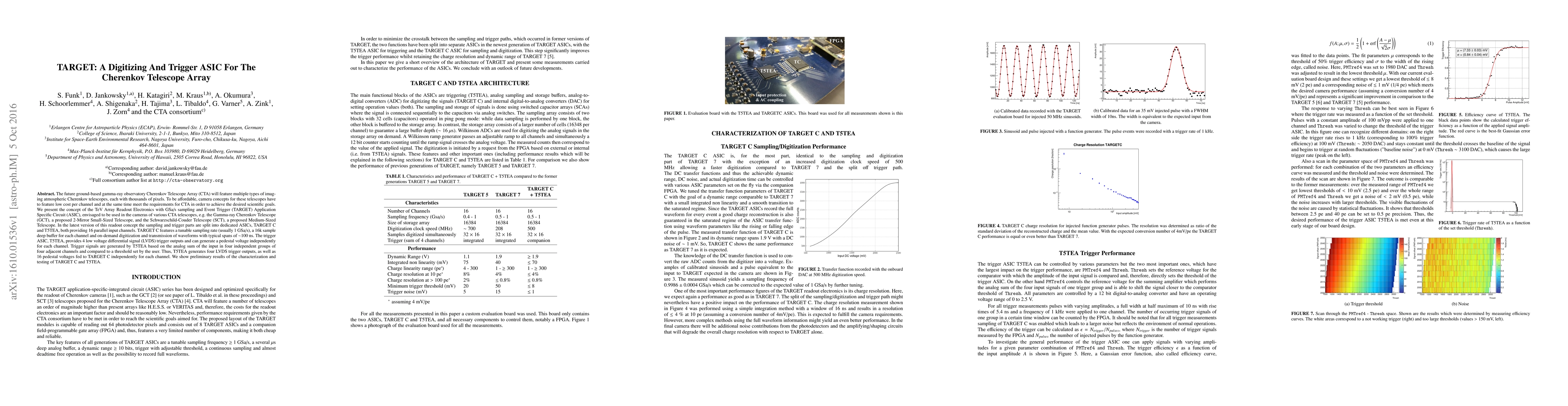The paper introduces the TARGET ASIC, designed for the Cherenkov Telescope Array (CTA), which splits sampling and triggering into separate chips to meet low-cost and high-performance requirements for CTA's imaging atmospheric Cherenkov telescopes. Preliminary results of the TARGET C and T5TEA chips are presented.