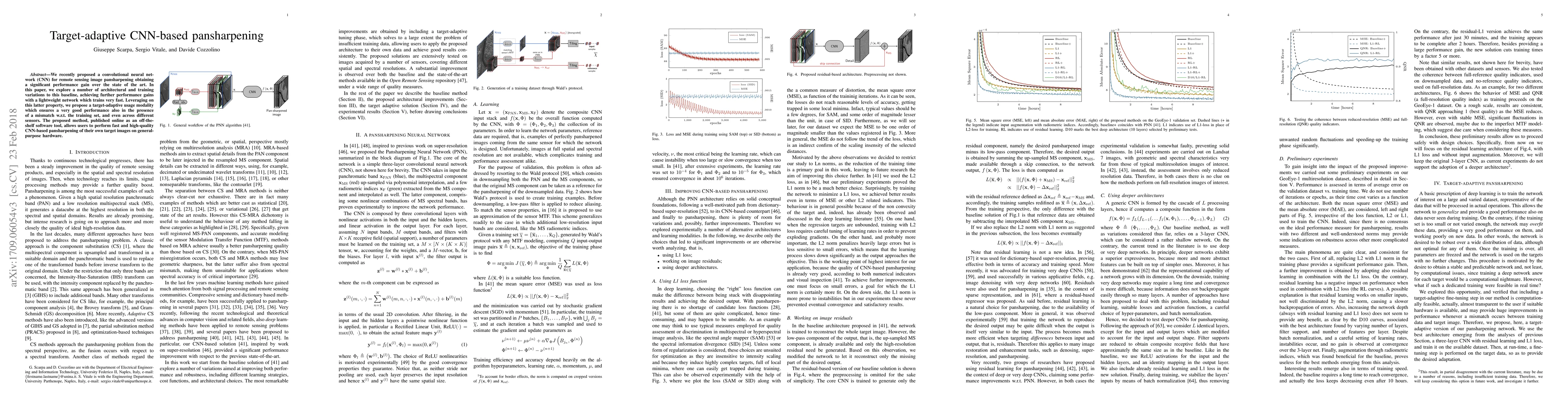 This paper enhances a convolutional neural network (CNN) for remote sensing image pansharpening, achieving further performance gains through architectural and training variations. It introduces a target-adaptive modality that maintains high performance despite mismatches with training data and across different sensors, enabling fast and high-quality pansharpening on general-purpose hardware.
