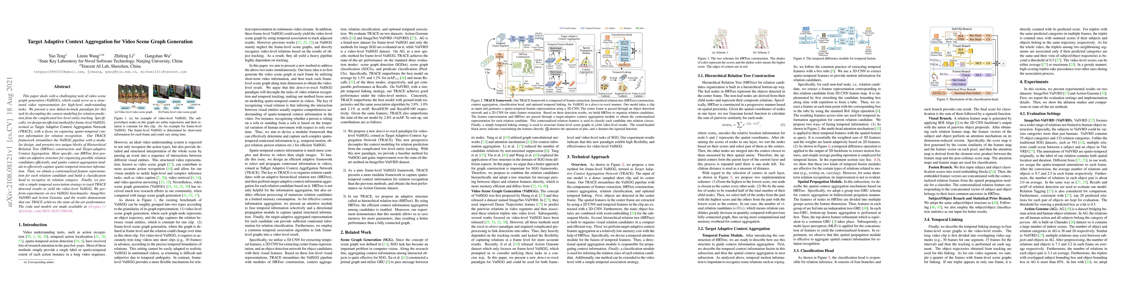 This paper introduces a novel "detect-to-track" framework called TRACE for video scene graph generation, achieving state-of-the-art performance by decoupling context modeling from entity tracking and employing hierarchical relation tree construction and adaptive context aggregation. Experiments on two benchmarks validate its effectiveness.