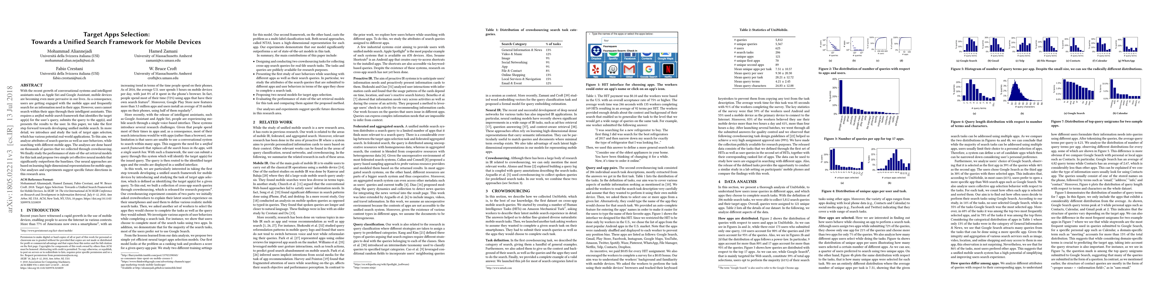 This paper introduces a unified search framework for mobile devices, focusing on the task of target apps selection to identify and submit queries to appropriate apps. The study analyzes query attributes and user behaviors, proposing effective neural models that outperform baselines, and suggests future research directions.