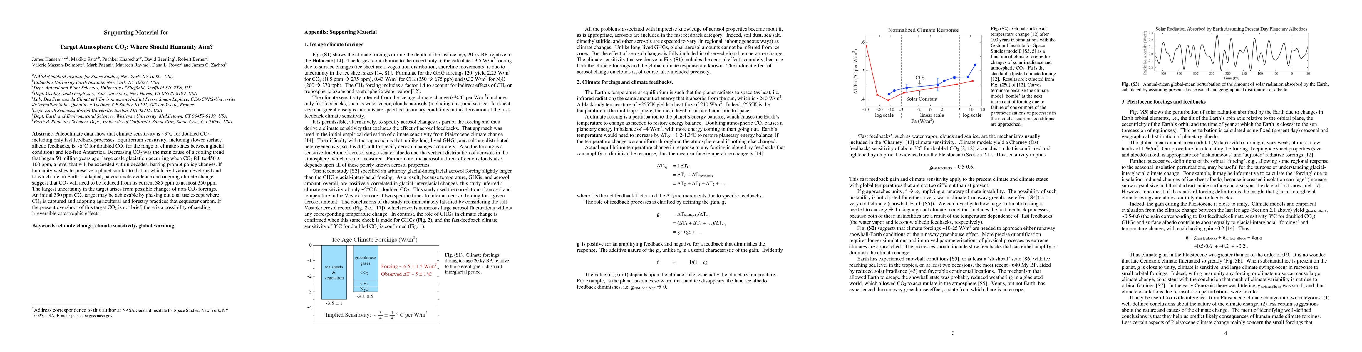 Additional material supporting the article "Target atmospheric CO2: Where should humanity aim?"